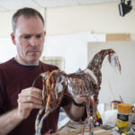 Mark’s artwork explores history and conflict through our relationship with animals, especially horses. His sculptures are created from the skeleton outwards using recycled materials, including thousands of wire strands. The horseman is an ancient symbol of strength, whereas his cavalry are meditations on the fragility of life and the tragedy of Imperialism