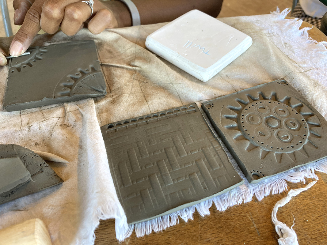 Plaster stamps of textures taken from Sunnybank Mills as well as a variety of tools will be available to use for your creations.